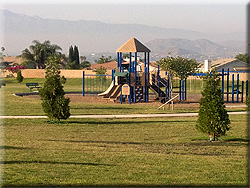 Promenade Park is one of the larger parks In Corona, Promenade has two excellent baseball fields, basketball courts, shelter, and a large play area for the kids. There are also large fields to stretch out and play! |