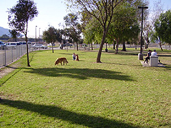 Last weekend we took our people to the Corona Dog Park. The dog park was so much fun and we made many new friends. It was great to run in the large gated area with no leashes. We played chase, catch, and sniffed to our heart's content. The Corona dog park even had a special water fountain just for us! I am sure we will go back as our people seemed to enjoy their own park benches under the large shade trees. I heard our people comment on the way home that they really enjoyed the beautiful backdrop of the mountains and watching all the custom planes take off from the Corona Airport |