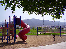 One of Corona's smaller parks nestled just behind Santiago High School. A great get away with mountain views and a play area for the kids. |
